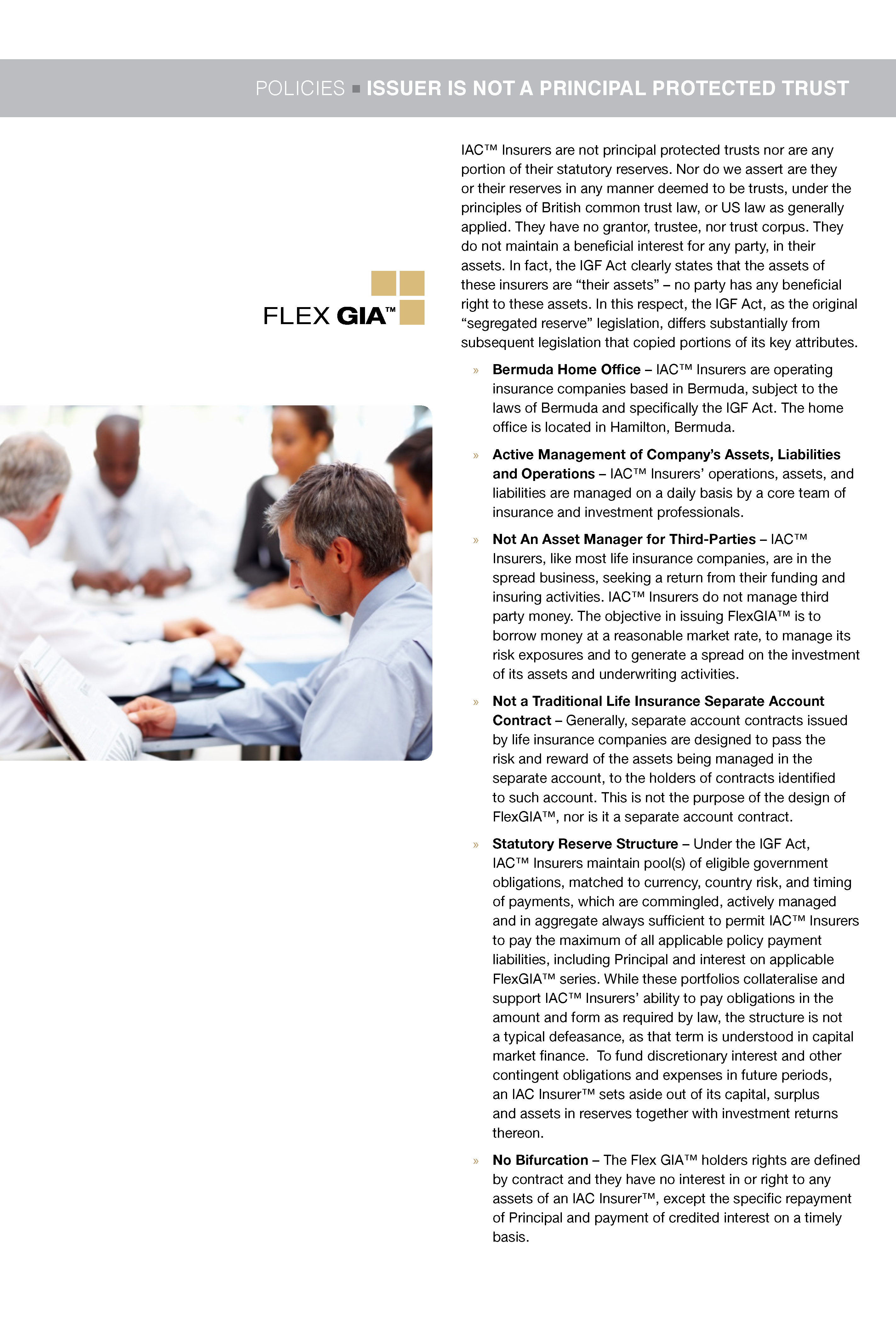 As illustrated, IAC™ Insurers may provide a wide range of FlexGIA™ Series designed to address specific balance sheet and income statement issues.